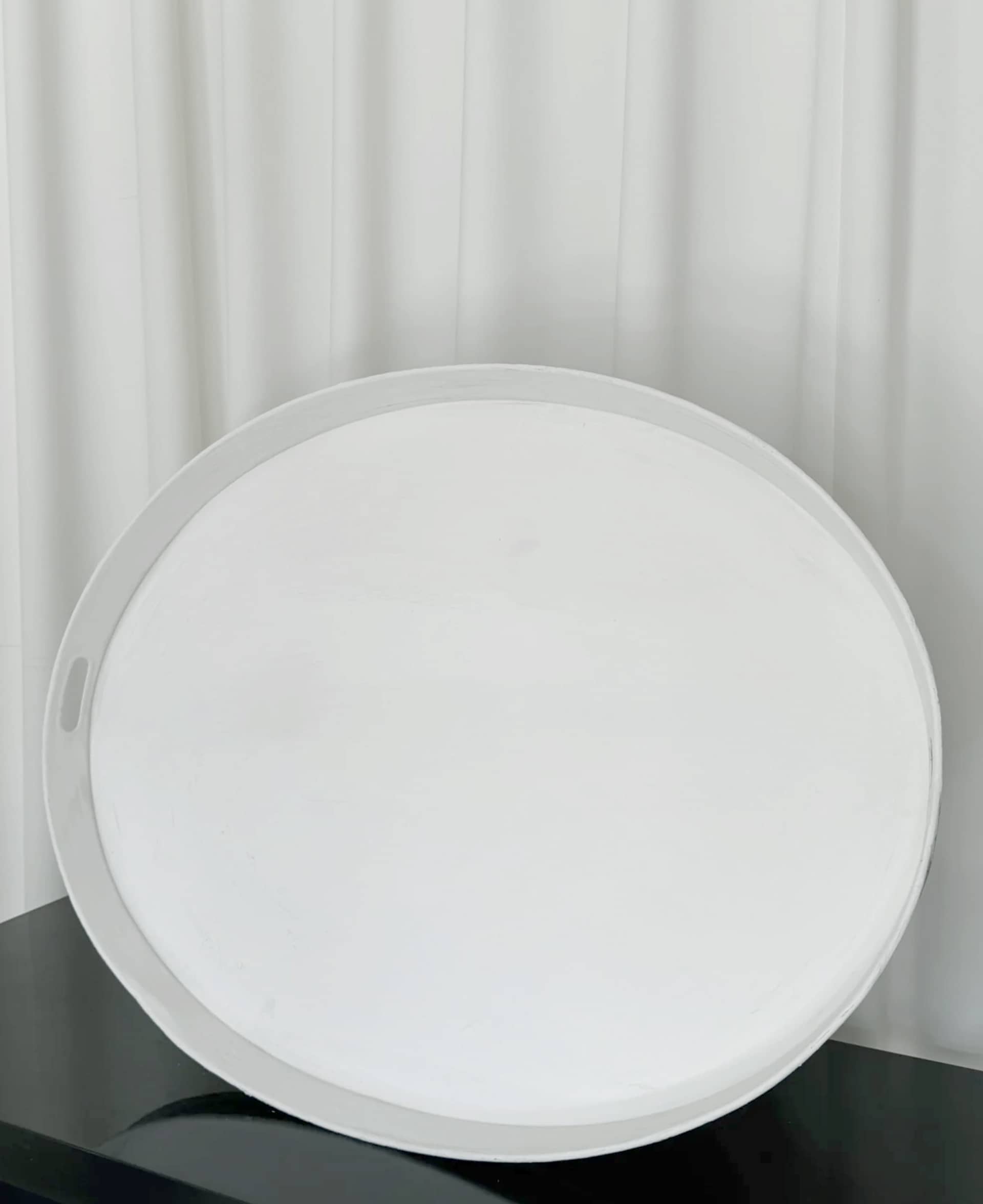 An elegant oval shaped metal tray with handles, American, Contemporary.