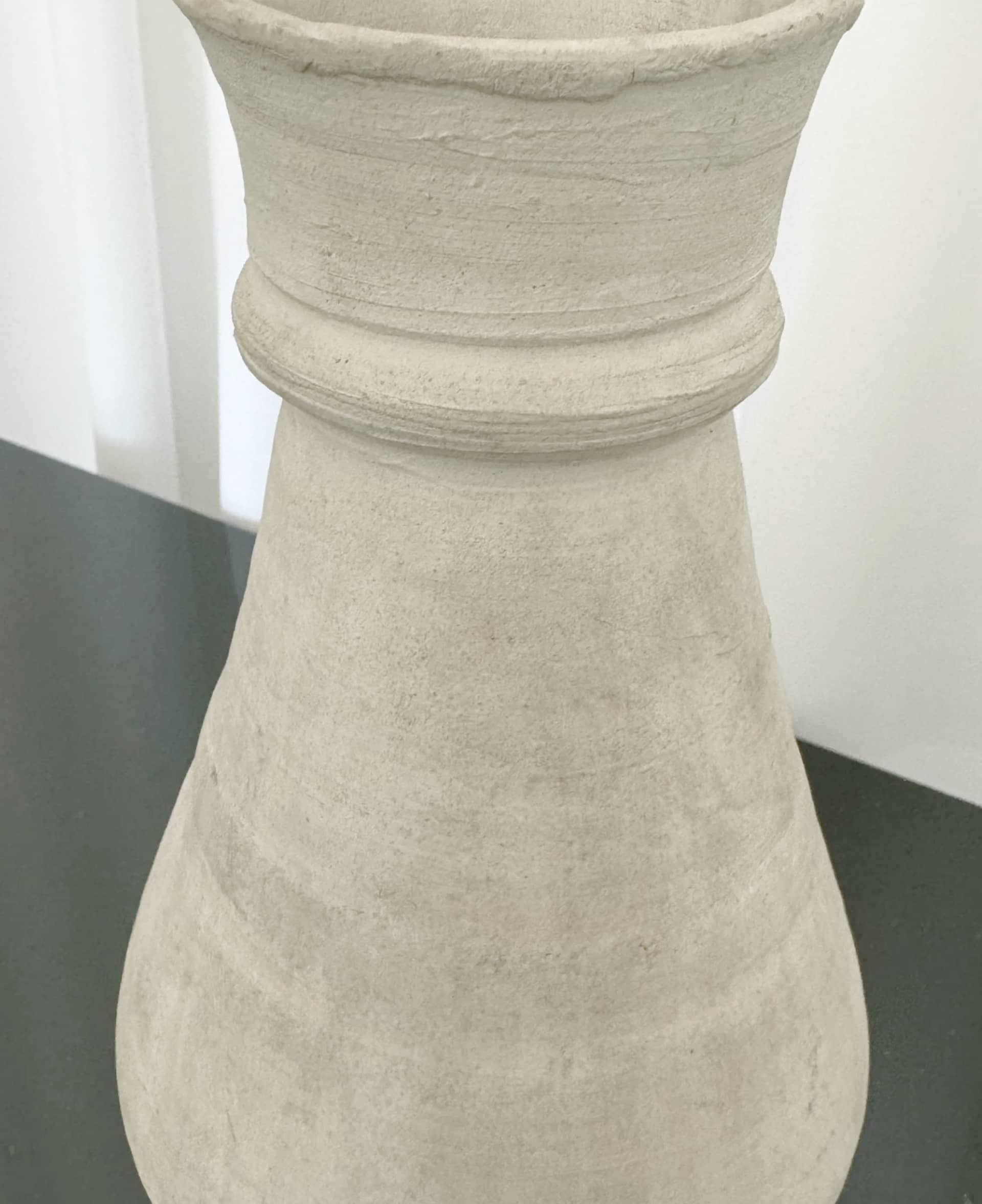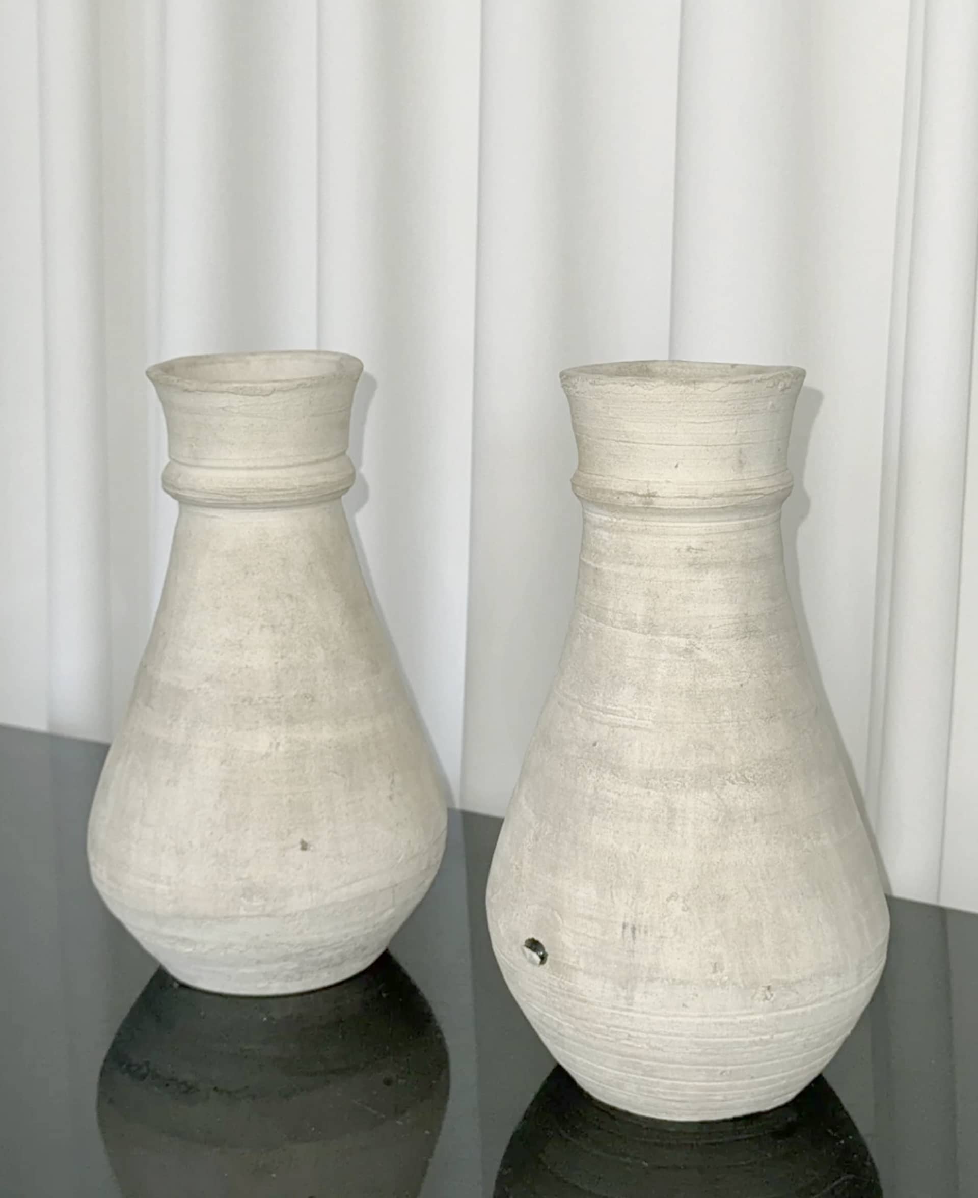 A handmade pair of Moroccan ceramic vases with naturally aged patina.