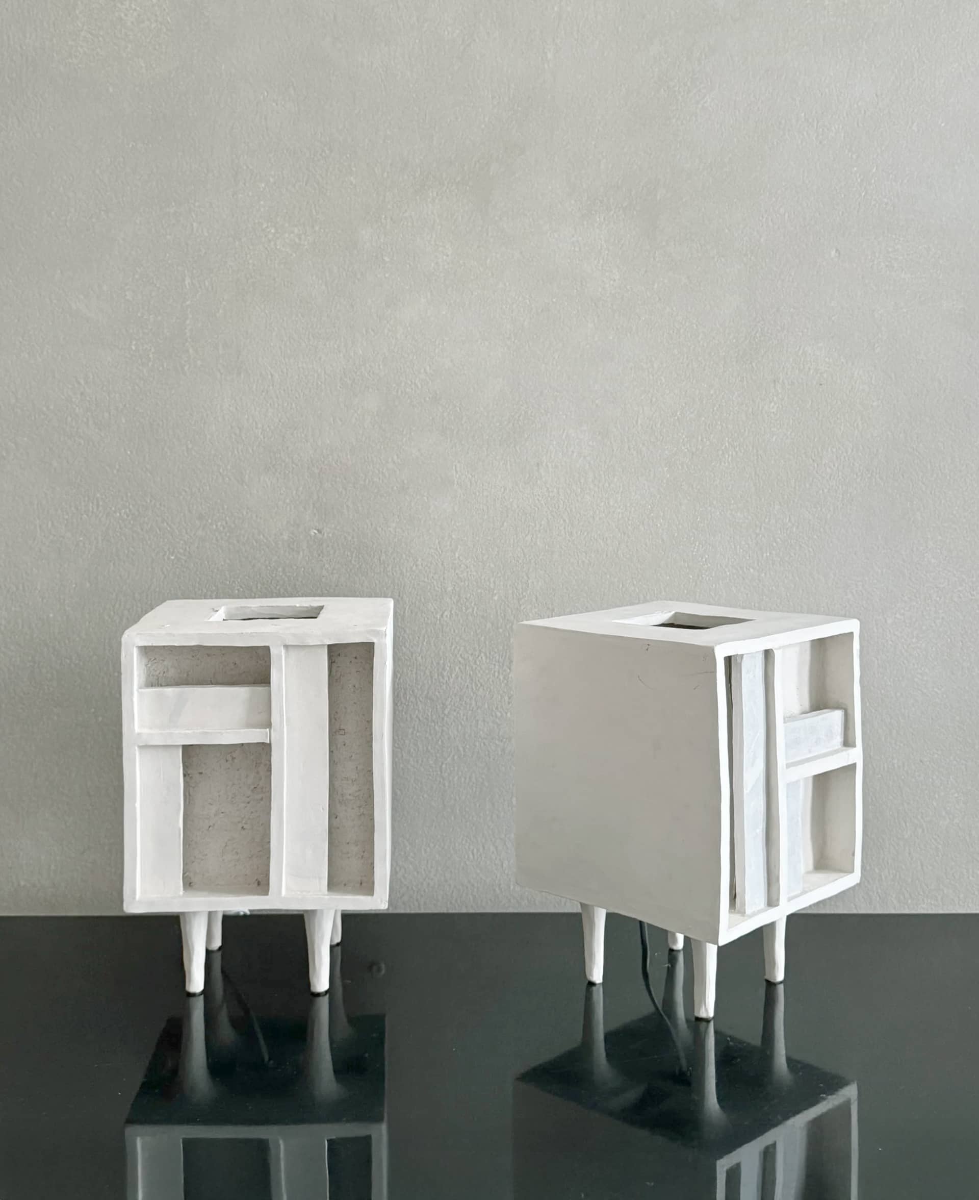 Plastered White Cube Table Lamps